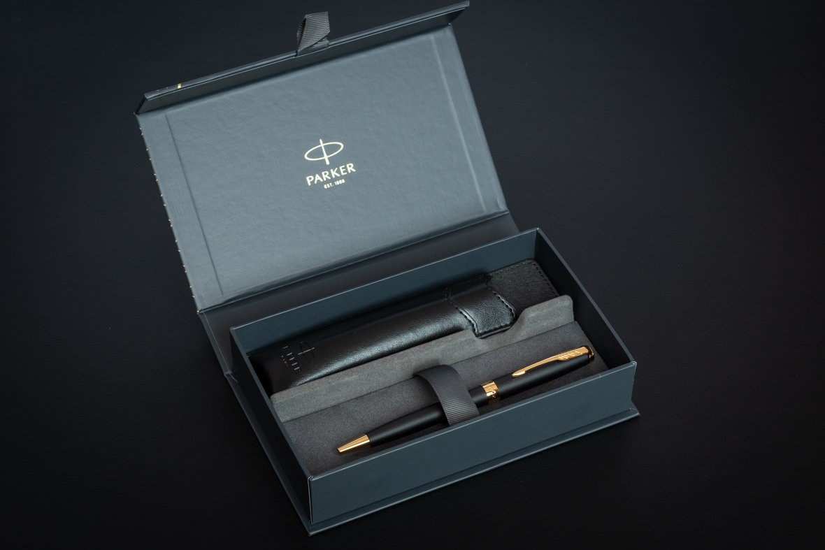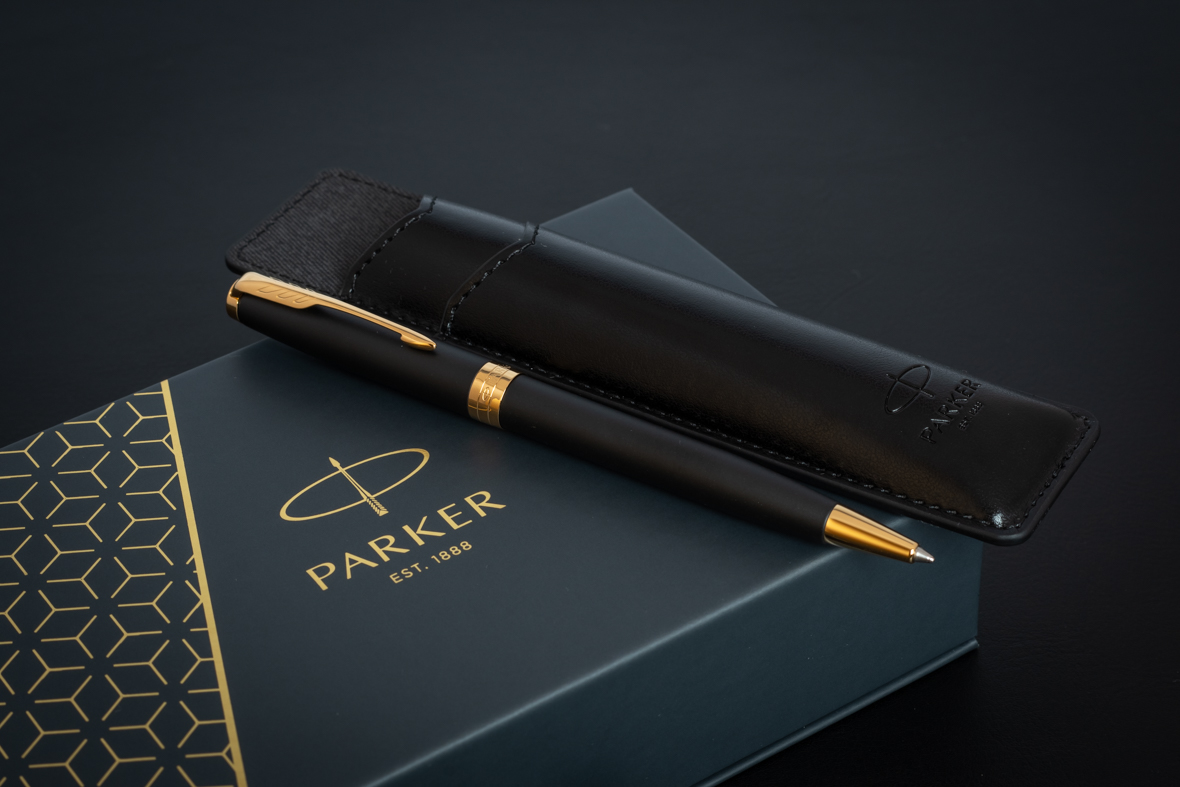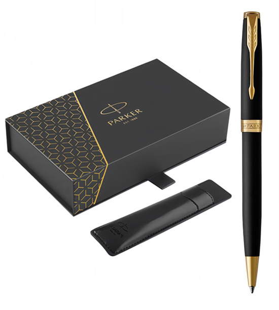 Набор Parker Sonnet Black GT (шариковая ручка + чехол) от официального дилера Parker в Дубаи. Вы можете дополнительно заказать гравировку, которая подчеркнет Вашу оригинальность и придаст памятность статусному подарку. Все ручки Паркер поставляются в фирменном футляре.