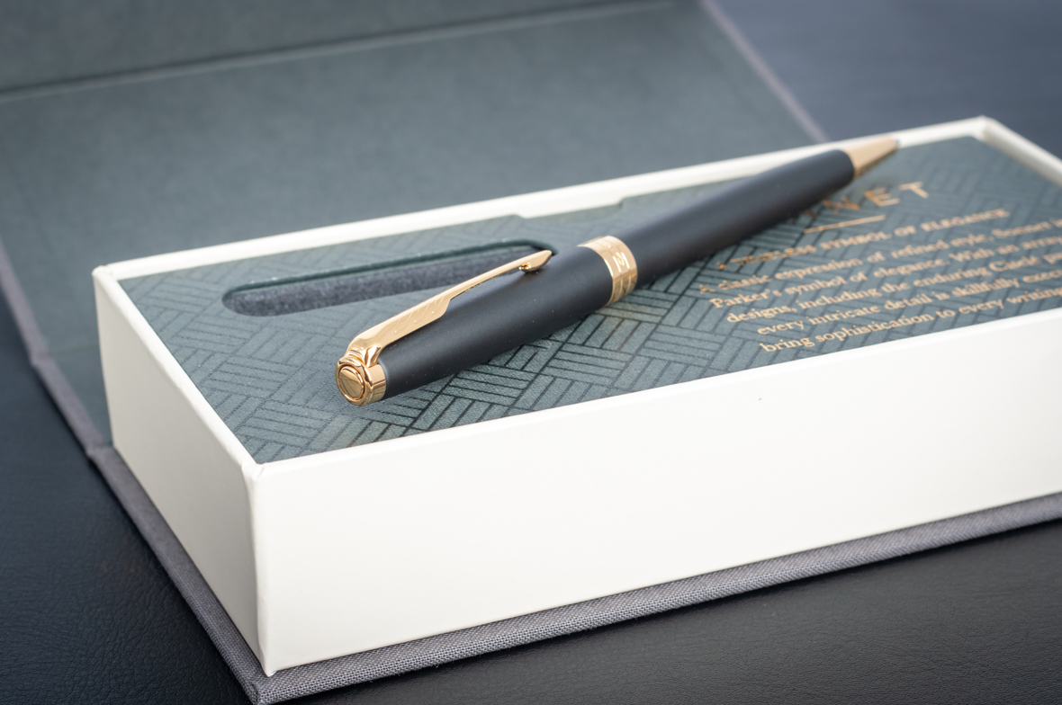 Шариковая ручка Parker Sonnet Matte Black GT от официального дилера Parker в Дубаи. Вы можете дополнительно заказать гравировку, которая подчеркнет Вашу оригинальность и придаст памятность статусному подарку. Все ручки Паркер поставляются в фирменном футляре.