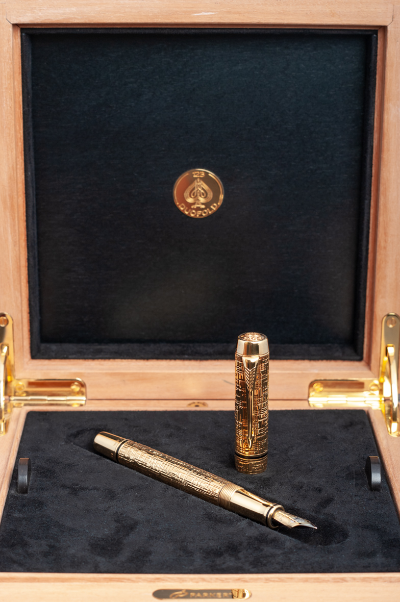 Перьевая ручка Parker Duofold Solid Gold F К от официального дилера Parker в Дубаи. Вы можете дополнительно заказать гравировку, которая подчеркнет Вашу оригинальность и придаст памятность статусному подарку. Все ручки Паркер поставляются в фирменном футляре.