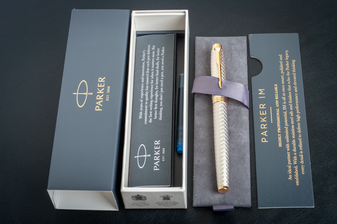 Перьевая ручка Parker IM Premium Warm Silver GT от официального дилера Parker в Дубаи. Вы можете дополнительно заказать гравировку, которая подчеркнет Вашу оригинальность и придаст памятность статусному подарку. Все ручки Паркер поставляются в фирменном футляре.