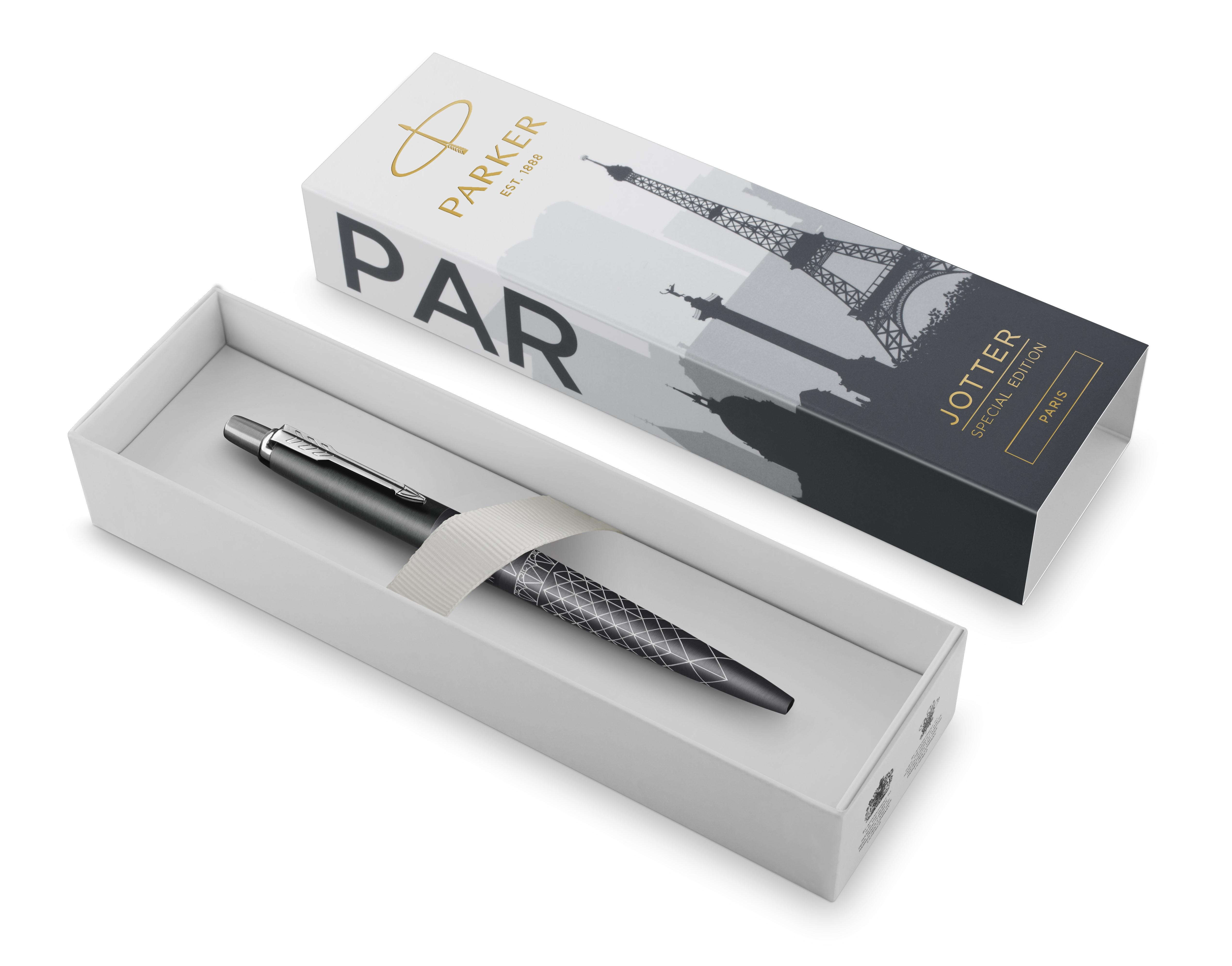 Ручка шариковая Parker Jotter Paris Grey CT от официального дилера Parker в Дубаи. Вы можете дополнительно заказать гравировку, которая подчеркнет Вашу оригинальность и придаст памятность статусному подарку. Все ручки Паркер поставляются в фирменном футляре.