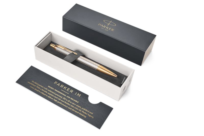 Шариковая ручка Parker IM Premium Warm Silver GT от официального дилера Parker в Дубаи. Вы можете дополнительно заказать гравировку, которая подчеркнет Вашу оригинальность и придаст памятность статусному подарку. Все ручки Паркер поставляются в фирменном футляре.